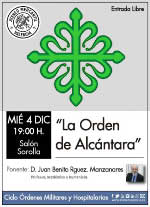 El día 4 de diciembre, dentro del ciclo de conferencias dedicadas a las Órdenes de Caballería, Militares y Hospitalarias, que estoy realizando en el Ateneo Mercantil de Valencia, impartí la que correspondía a la Orden de Alcántara.