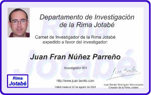 El poeta Juan Fran Núñez Parreño, tiene la genial idea de incluir un verso que es un palíndromo perfecto. Constituyendo una gran curiosidad dentro del mundo de la Rima Jotabé.