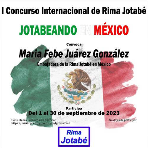 | La poeta y Embajadora de la Rima Jotabé en México Febe Juárez, organiza el I Concurso Internacional de Rima Jotabé Jotabeando en México, donde la única estructura válida para participar, es la Rima Jotabé. |